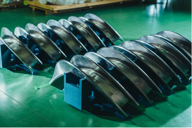 10 completed coil case parts. Once assembled, they will form the foundation for the helical high-temperature superconducting magnet. The parts will be transported to the construction site for the Integrated Demo Device, Helix HARUKA, where assembly will proceed.